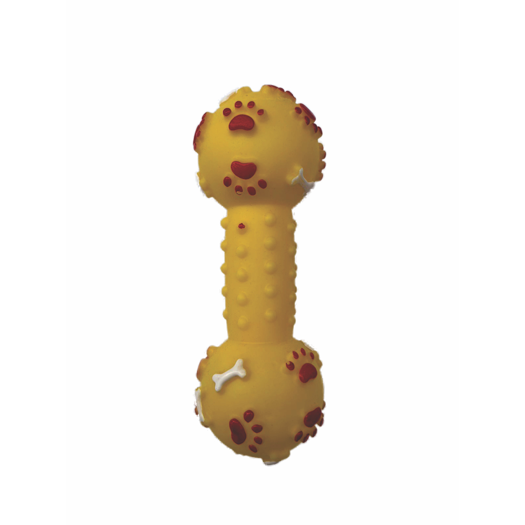 O Brinquedo Halteres é ideal para o pet que passa muito tempo sozinho em casa, ajudando a diminuir o estresse.