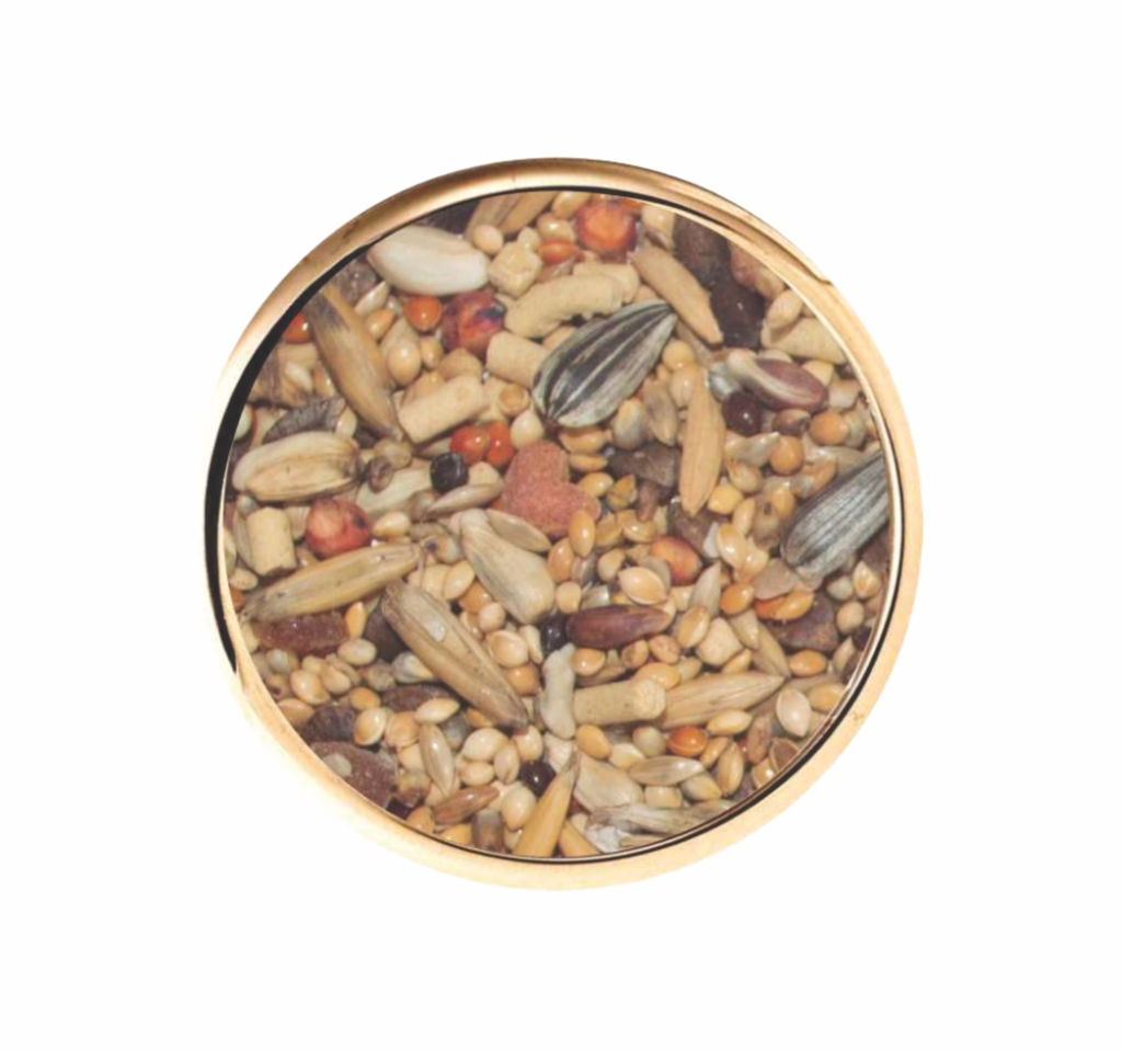 Alpiste. Painço Nacional, Painço Vermelho, Painço Preto, Maça Desidaratada (Mn. 1,0%), Laranja e Mamão Desidratado ( Mn. 2,0%), Cenoura Desidratada (Mn.0,1%), Arroz em Casca, Aveia em Casca, Girassol Moido, Trigo Mourisco, Cartamo, Sorgo Vermelho, Milho Moido, Quirera de Arroz, Farelo de Soja, Farelo de Gluten de Milho 60, Germen de Milho Integral, Beterraba em Pó, Ovo Integral Desidratado, Extrato de Propolis, Cloreto de Sodio, Farinha de Ostras, Sacarina Sodica, Neoespiridina, Dixido se Silicio, MOS (Mananoligosacardeos), Adsorvente de Micotoxinas, Aditivo Antifngico ( Propionato de Calcio), Aditivo Antioxidante (B.H.T).