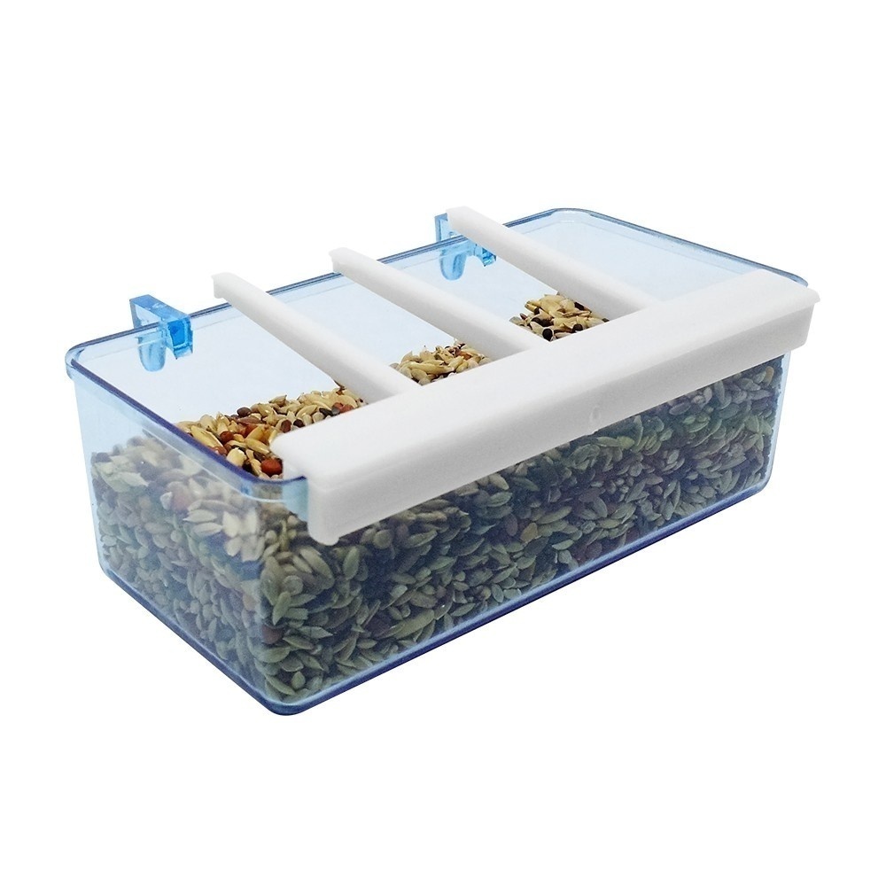 . Impedindo o contato da ave com as sementes e facilitando a limpeza;