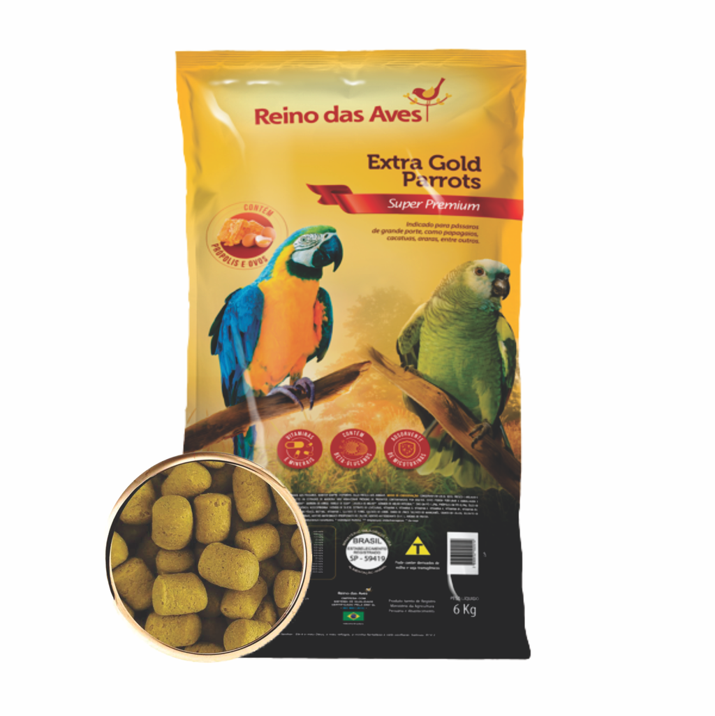 ALIMENTO SUPER PREMIUM INDICADO PARA PASSAROS DE GRANDE PORTE, COMO PAPAGAIO, CATATUAS, ARARAS, ENTRE OUTROS.