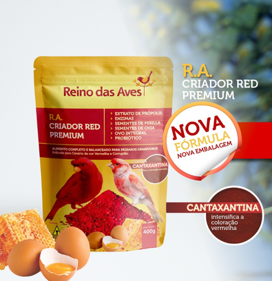 Alimento completo e balanceado para passaros granivoros, indicado para canário de cor vermelha e corrupião.