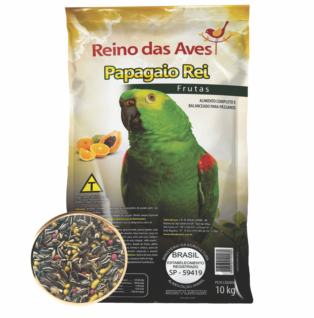 Alimento completo e balanceado para psitacídeos de grande porte, tais como, papagaios, cacatuas, araras entre outros.