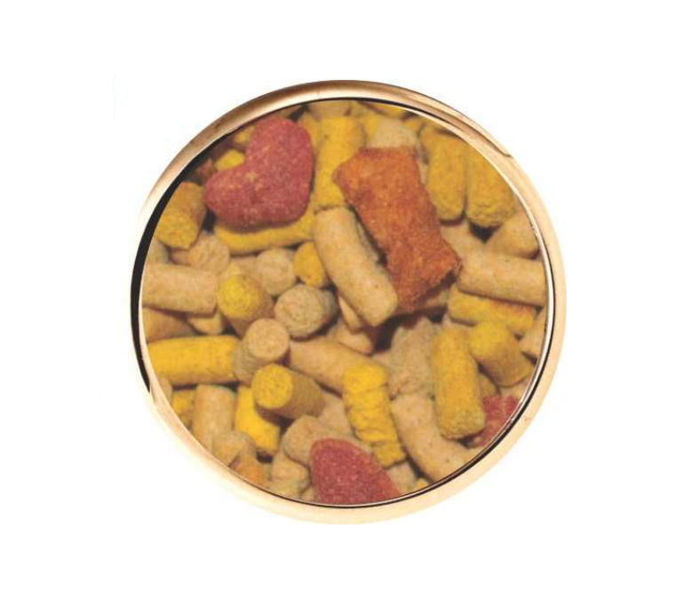 Cenoura Desidratada (Mn. 1,0%), Maça Desidratada (Mn. 2,5%), Beterraba Desidratada (Mn. 0,1%), Milho Moido, Farelo de soja, Germen de Milho Integral, Casca de Arroz Moida, oleo de soja, Sal Comum, Carbonato de Calcio, Vitamina A, Vitamina D, Vitamina E, Vitamina B1, Vitamina B2, Vitamina B6, Niacina, acido Pantotnico, cido Flico, Vitamina C, Sulfato de Ferro, Sulfato de Cobre, oxido de Zinco, Sulfato de Manganes, Iodato de Calcio, Selenito de Sodio, Sacarina Sodica, Neoespiridina, Dioxido de Silicio, Corante Amarelo Tartrazina, Aditivo Antioxidante (B.H.T), Aditivo Antifungico (Propionato de Clcio), Aroma de Frutas.