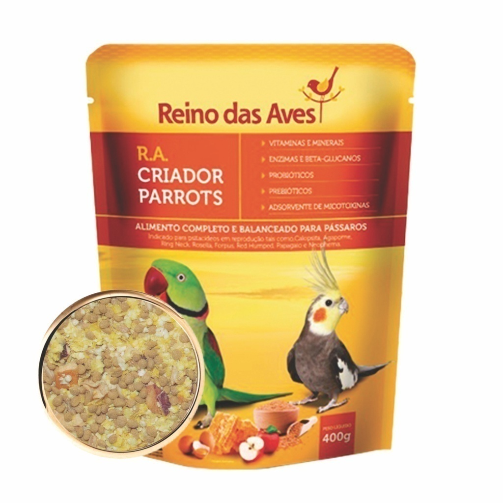 ALIMENTO COMPLETO E BALANCEADO INDICADO PARA PSITACÍDEOS EM REPRODUÇÃO TAIS COMO: CALOPSITA, AGAPORNE, RING NECK, ROSELLA, FORPUS, RED RUMPED, PAPAGAIO E NEOPHEMA.