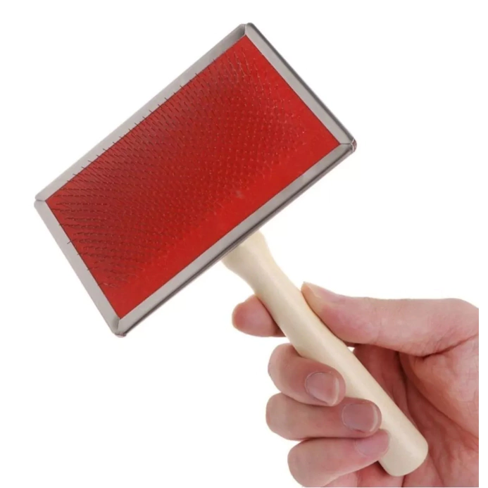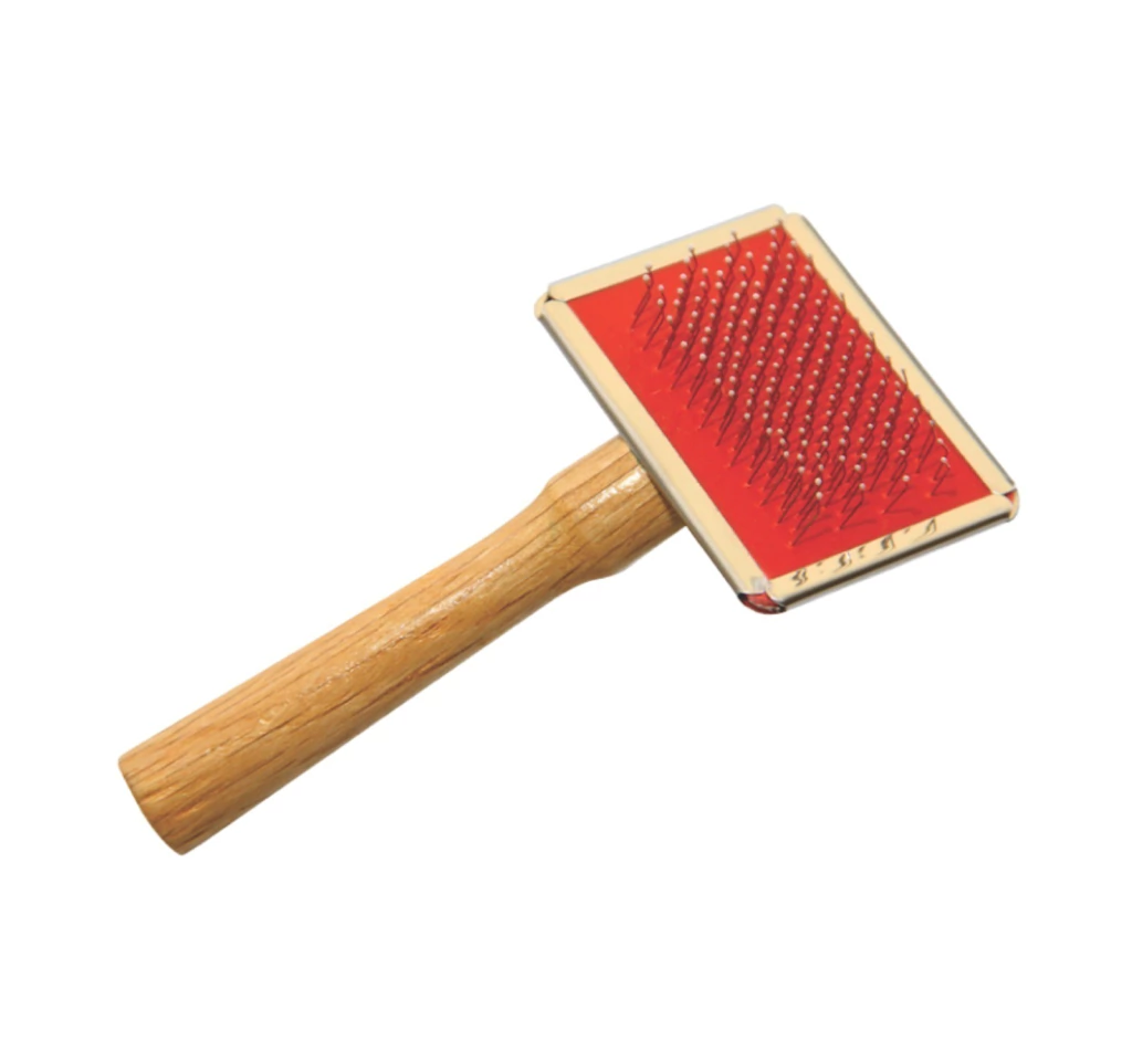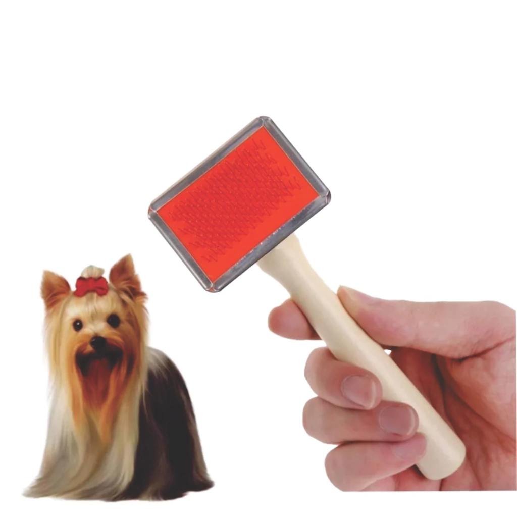 Escova Pet Rasqueadeira com Cabo de Madeira para Cães e Gatos.